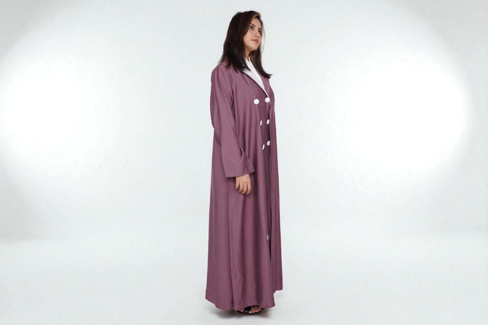 إطلالة تجمع بين الرقي والجرأة الناعمة، تتجلّى في هذه العباية البنفسجية الفاخرة المصنوعة من قماش كريب حرير انسيابي يمنحك لمسة نعومة فاخرة في كل حركة.