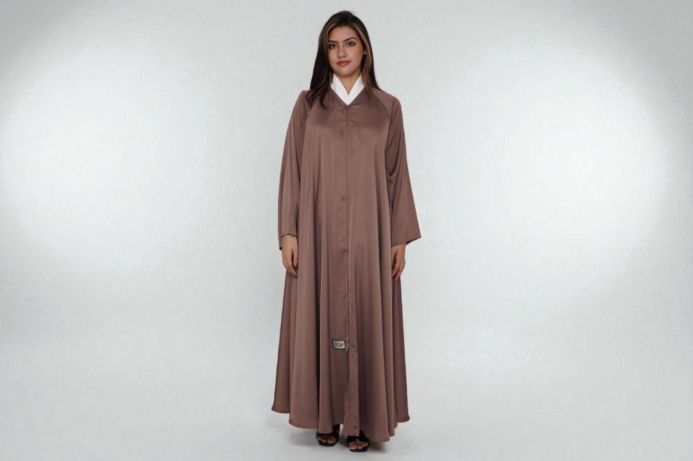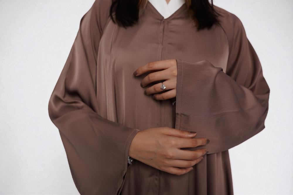 تألقي بإطلالة تعكس الرقي والهدوء مع هذه العباية بلون الموكا المميز.