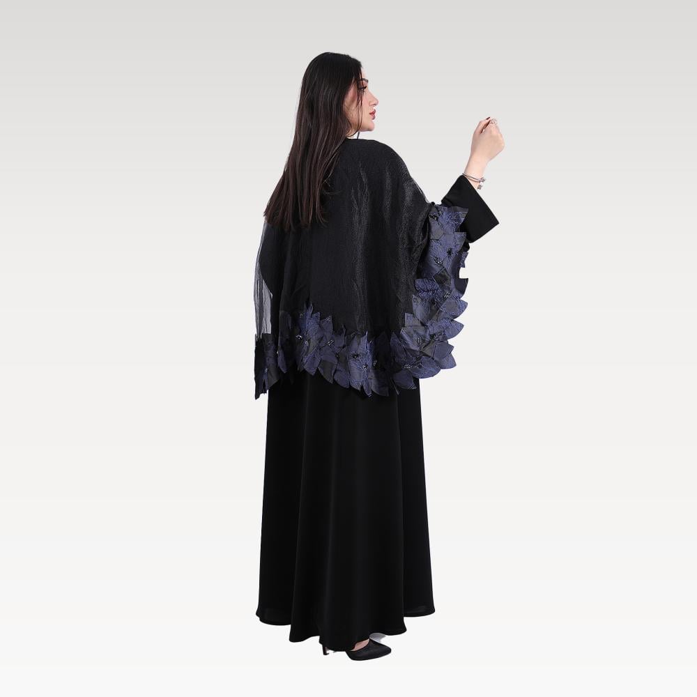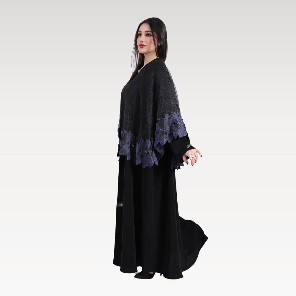 مستوحاة من جمال الورود، تعكس عباية بريق الوردة تميزًا في كل تفاصيلها. يتناغم اللون الأسود مع تفاصيل السيراميك السيلفر، مما يضفي لمسة من التألق والأناقة. تصميم الوردة يجسد الرقي والذوق الرفيع.