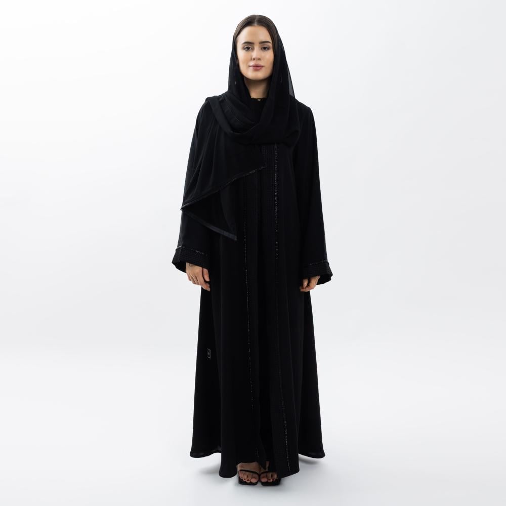 عباية سوداء بشغل ( كريب نص كلوش )