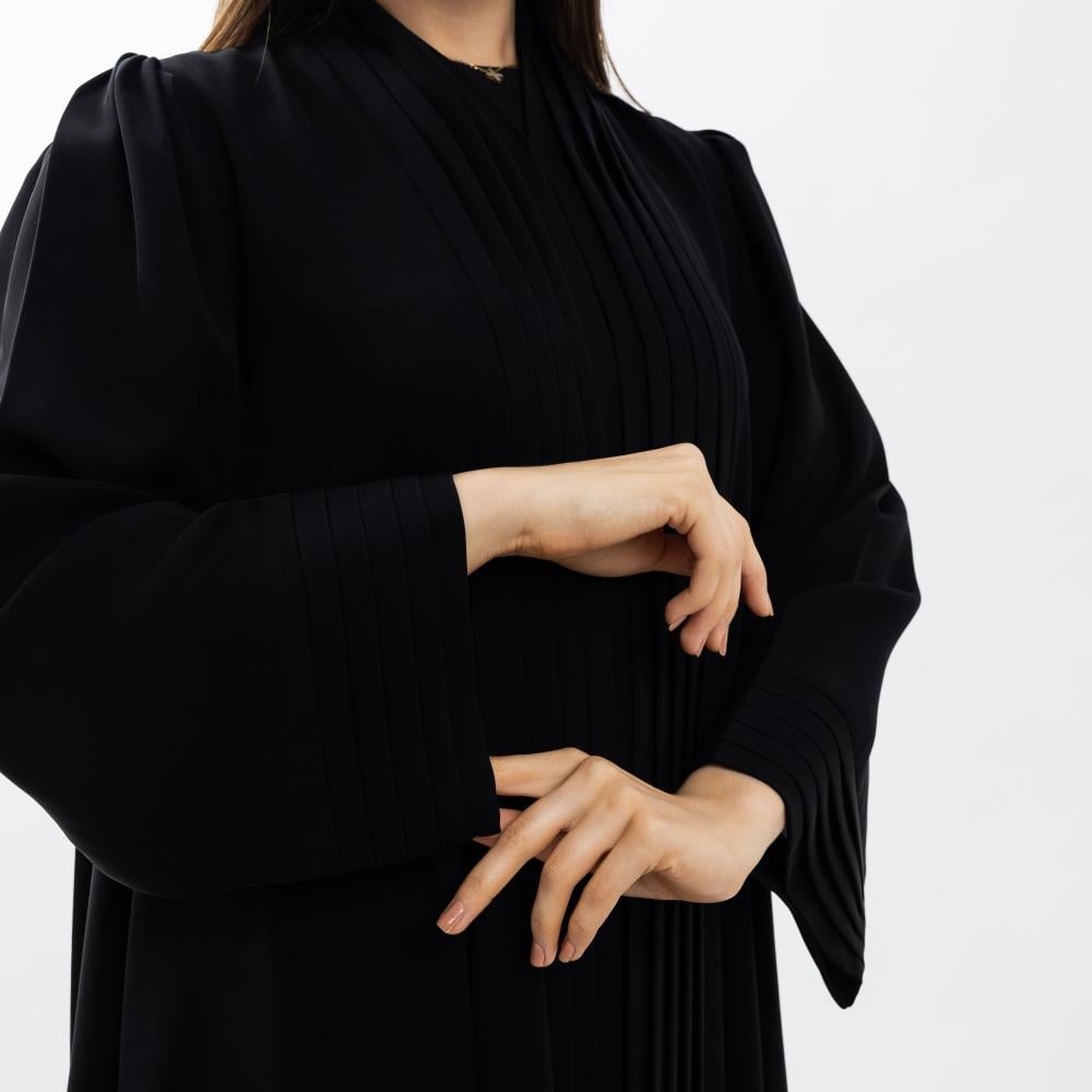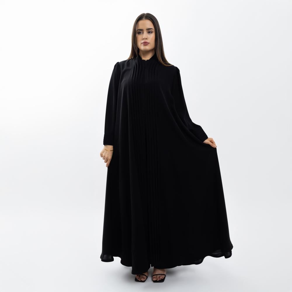 التفاصيل البسيطة على الجزء الأمامي تمنح العباية لمسة من التميز دون التأثير على بساطتها، بينما يوفر قماش الندى الناعم والمرن راحة طوال اليوم. التصميم العصري يجعل العباية سهلة التنسيق مع مختلف الإطلالات، لتكون خيارك الأمثل للعمل أو الخروجات اليومية.