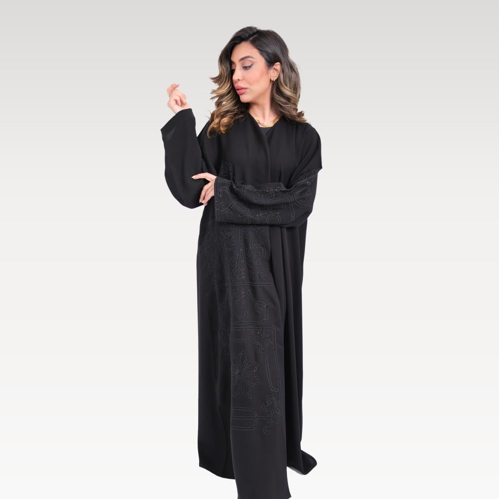تألقي بإطلالة فاخرة وجذابة مع عباية همس الحرير، المصممة من قماش كريب فاخر بلون أسود ملكي مع تطريزات سوداء أنيقة، لتجمع بين الغموض والفخامة في تصميم واحد. هذه العباية مثالية للسهرات والمناسبات الفاخرة، حيث تضيف لمسة من الجاذبية والتميز لإطلالتكِ.
