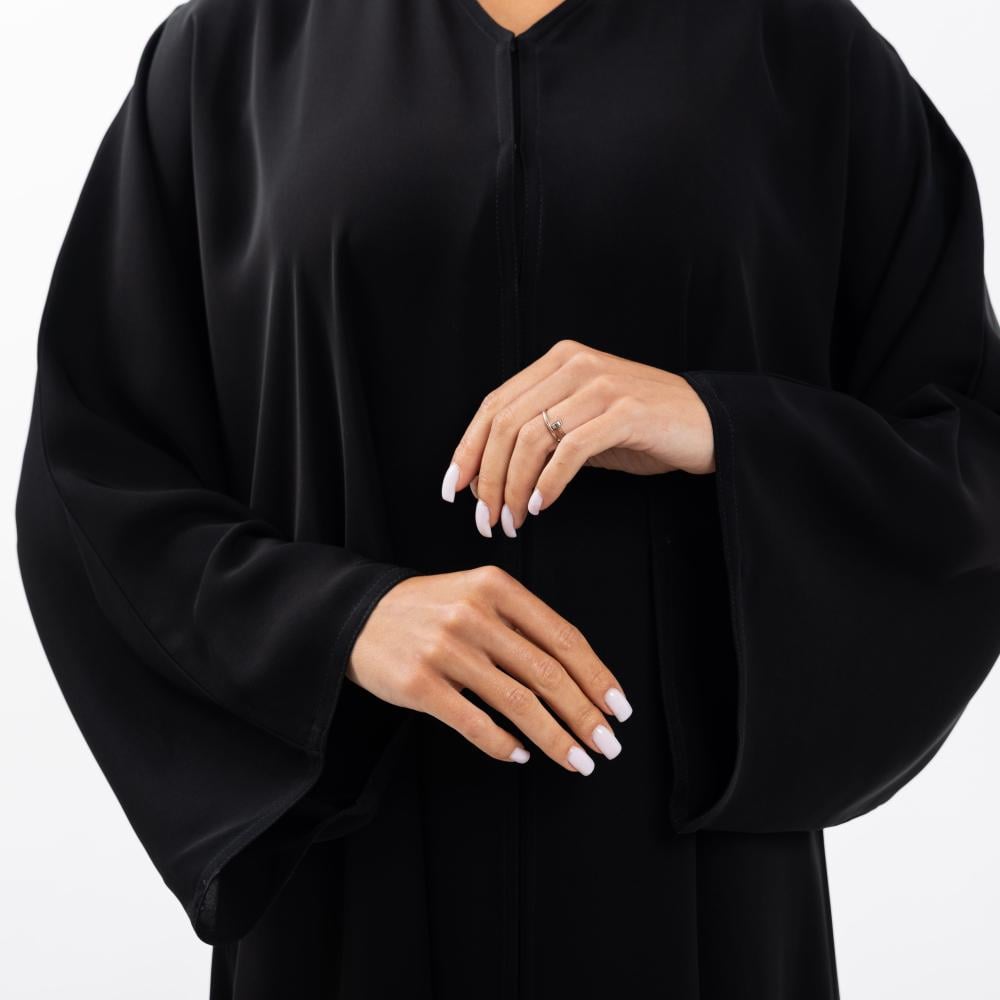 عباية سوداء دبل كلوش – لمسة انسيابية راقية