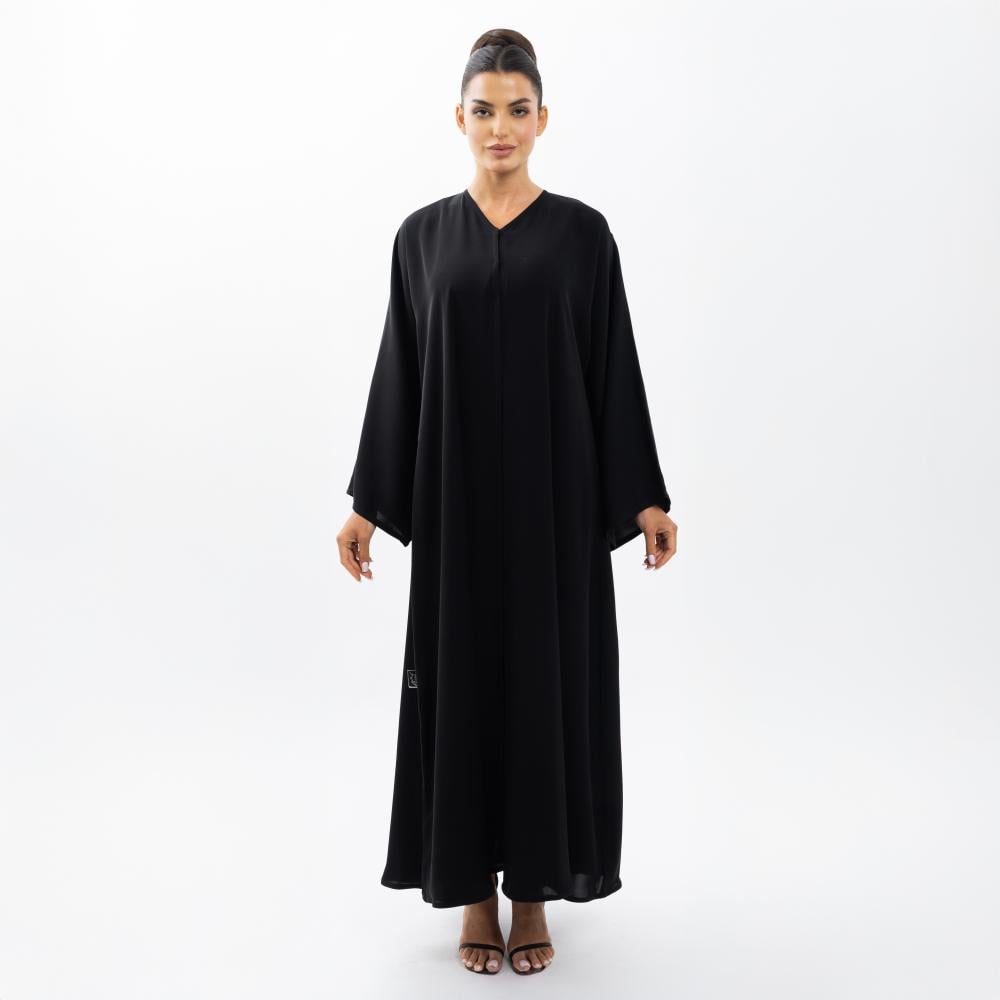 عباية فاخرة مصممة من قماش كريب "انترنت" الأسود المعروف بملمسه الناعم وخفته، تأتي بقصة دبل كلوش تضيف انسيابية مميزة وحضورًا أنثويًا لافتًا. تصميمها الكلاسيكي يعكس البساطة والفخامة في آنٍ واحد، لتكون خيارًا مثاليًا لكل من تبحث عن عباية عملية بأناقة خالدة.