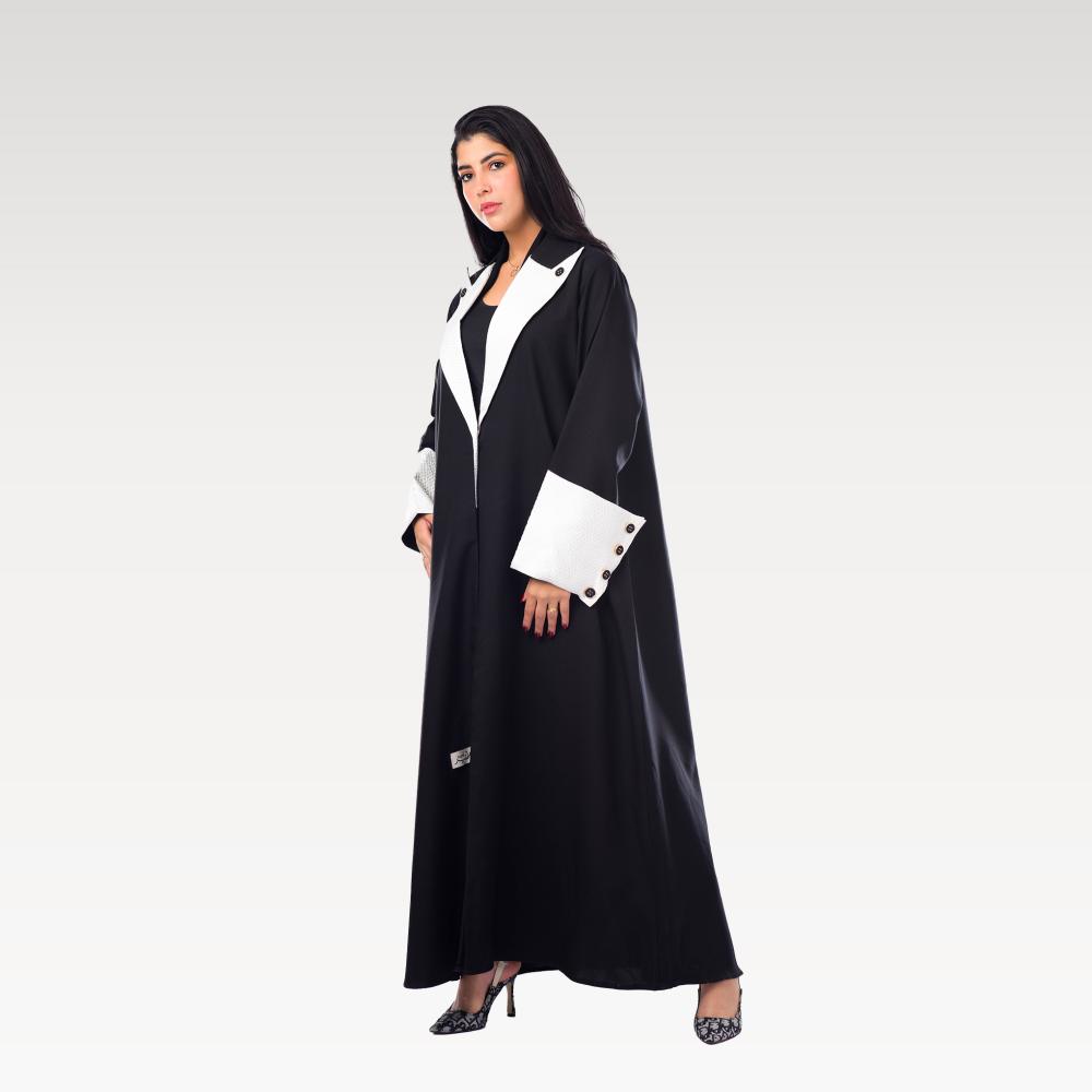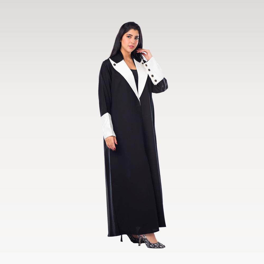 عباية "شذى الليل" تقدم لمسة من الأناقة اليومية بتصميم أسود غني مع تطريزات الخطوط الرمادية الأنيقة، مما يمنحك إطلالة مميزة تتناغم التفاصيل الدقيقة لتعطيكِ إطلالة مميزة وعملية في كل يوم.