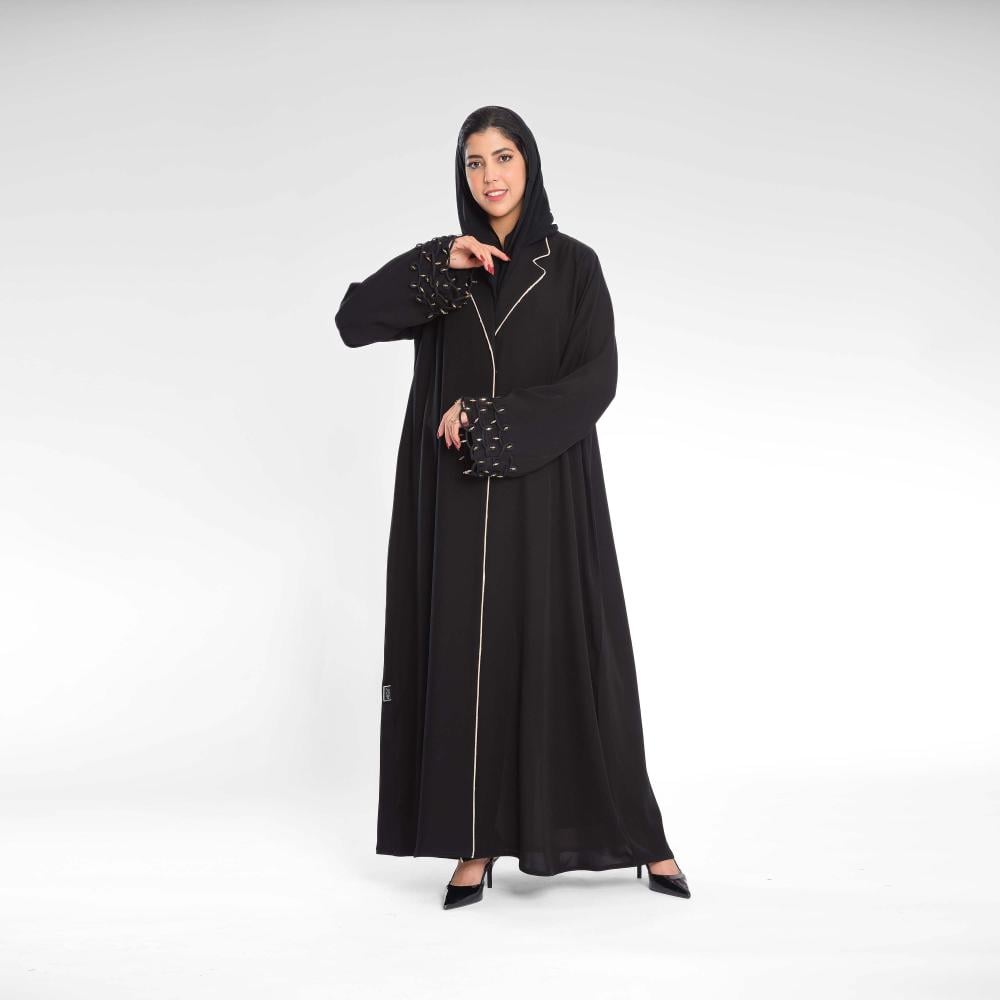 - أطراف بيضاء تضيف تباينًا أنيقًا ولمسة تميز على العباية.