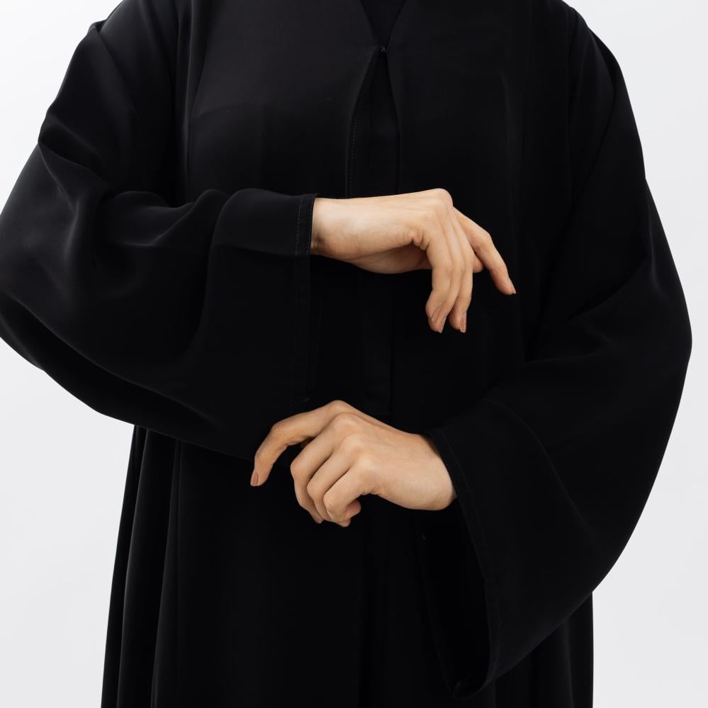 أضيفي لإطلالتكِ لمسة أنيقة وناعمة مع عباية ندى نص كلوش المزينة بكريستالات سوداء ناعمة. صُممت بأسلوب بسيط وفخم في آنٍ واحد، لتمنحكِ مظهرًا أنثويًا متوازنًا مثاليًا لأوقات النهار أو الأمسيات الهادئة. خامتها الانسيابية وقصتها المتّزنة تجعلها خيارًا مثاليًا للباحثات عن الأناقة الهادئة.