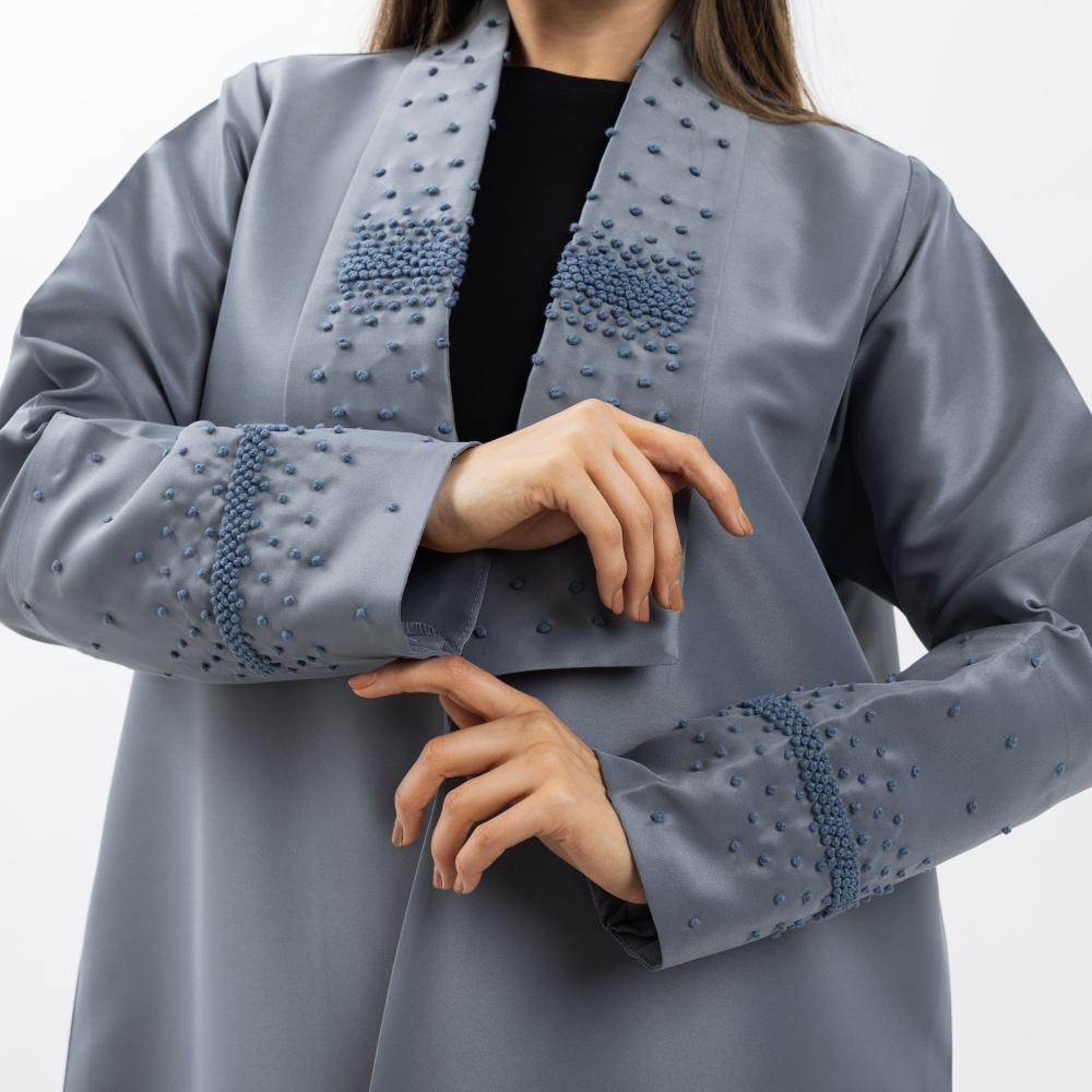 عباية مناسبات سماوي مع شغل ( نص كلوش تفته )