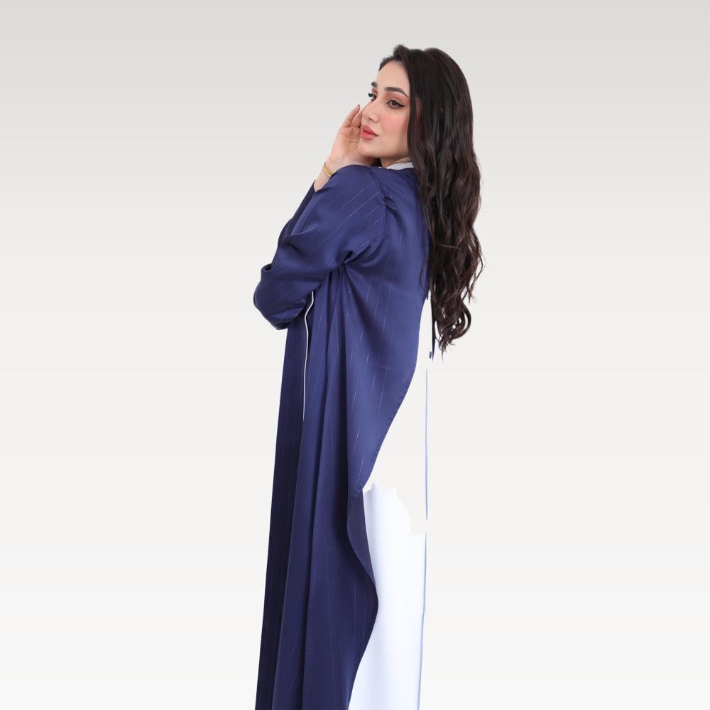 أضيفي لمسة من الفخامة والتميز إلى إطلالتك مع عباية أزرق غامق التي تمنحك الأناقة والرقي بتصميم كلاسيكي عصري.