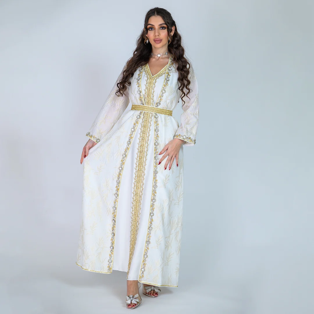 إطلالة مغربية فاخرة تتميز بالتفاصيل الدقيقة واللمسات التقليدية التي تبرز جمالكِ في كل مناسبة.