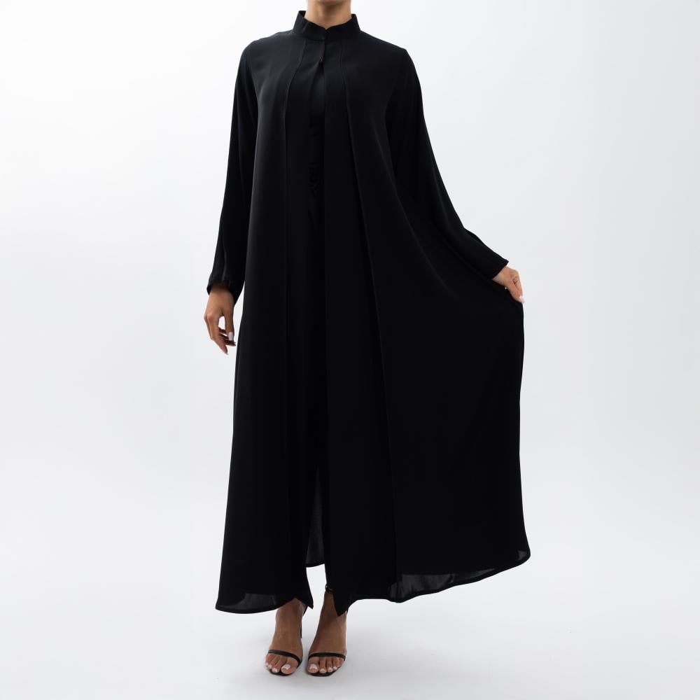 استلهم تصميم "نقاء الأسود" من بساطة وجمال اللون الأسود الصافي، حيث يبرز التصميم البسيط والأنيق جمال اللون ويعزز من أناقة الإطلالة اليومية. تعكس العباية مزيجاً من الأناقة والراحة بأسلوب عملي.