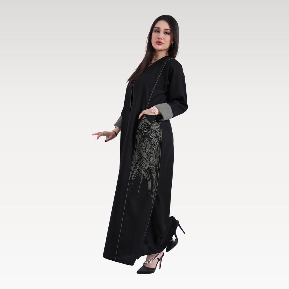إذا كنتِ تبحثين عن الأناقة في تصميم عملي، فإن عباية نور الرفاهية هي خيارك الأمثل. مصنوعة من كريب ناعم بلون أسود مع تطريز بسيط ولمسات شك ناعمة، بتصميم مريح بجيوب أنيقة وأكمام واسعة، لتمنحكِ الراحة والانسيابية في كل مشوار.