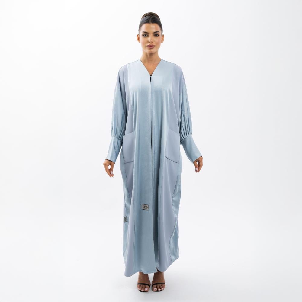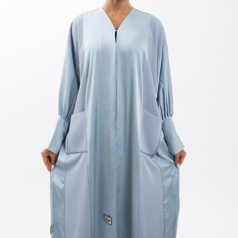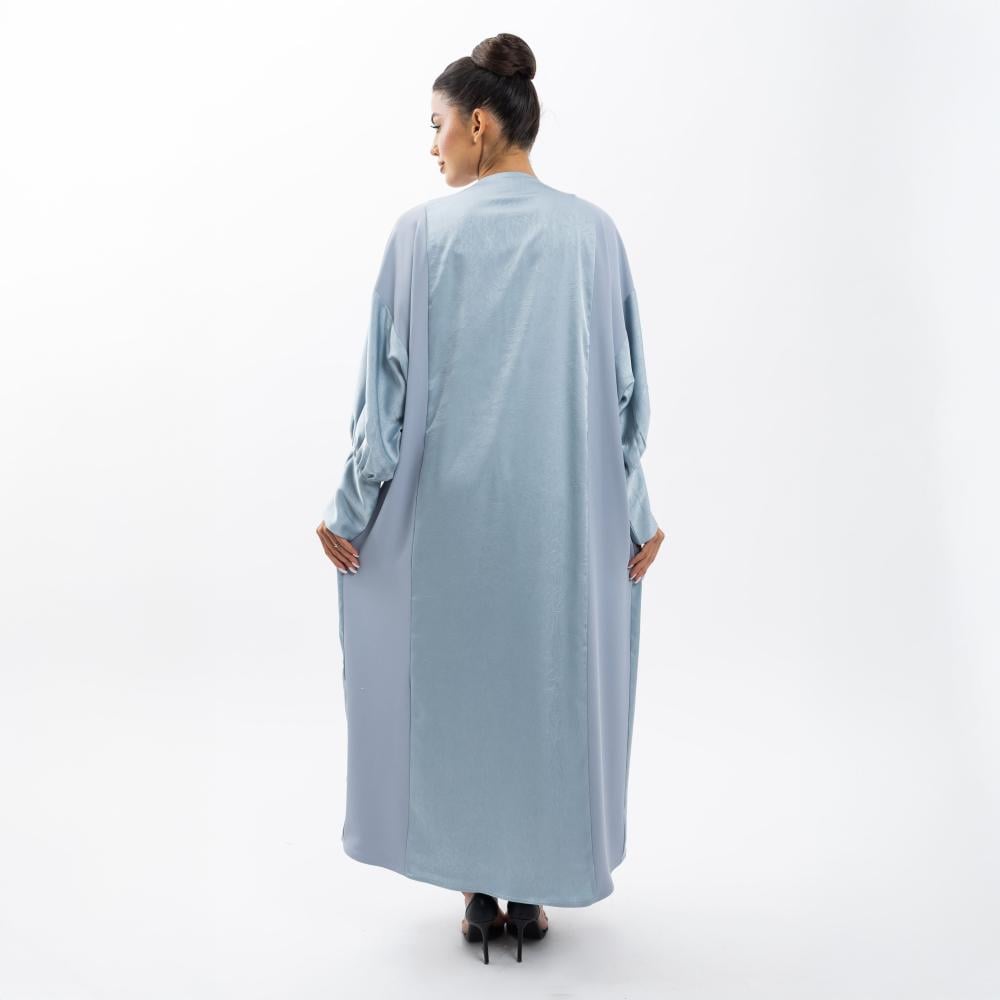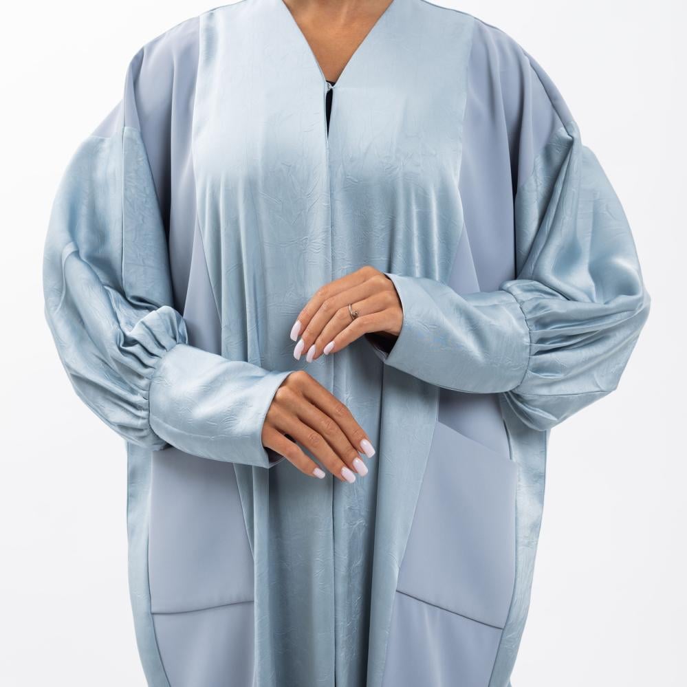 عباية لمسة حراير - أزرق فاتح بقماش تفته واسع بأكمام مجمعة