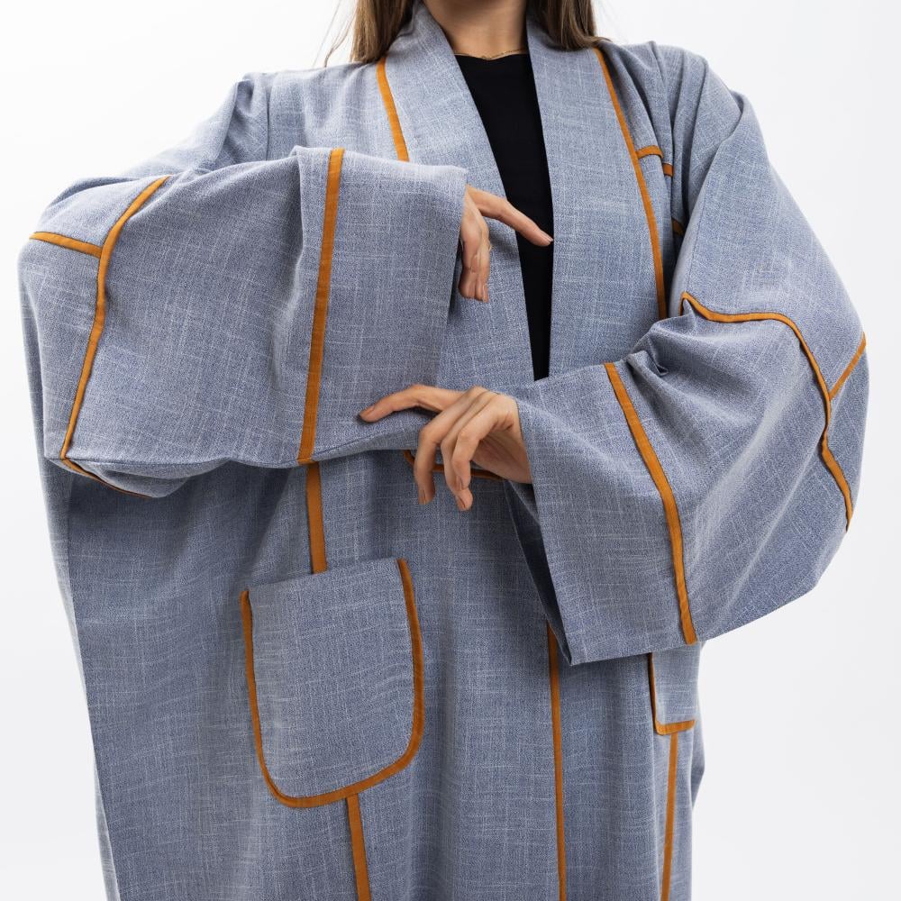 عبايه ملونه رمادي مع جيوب ( بشت لينن )
